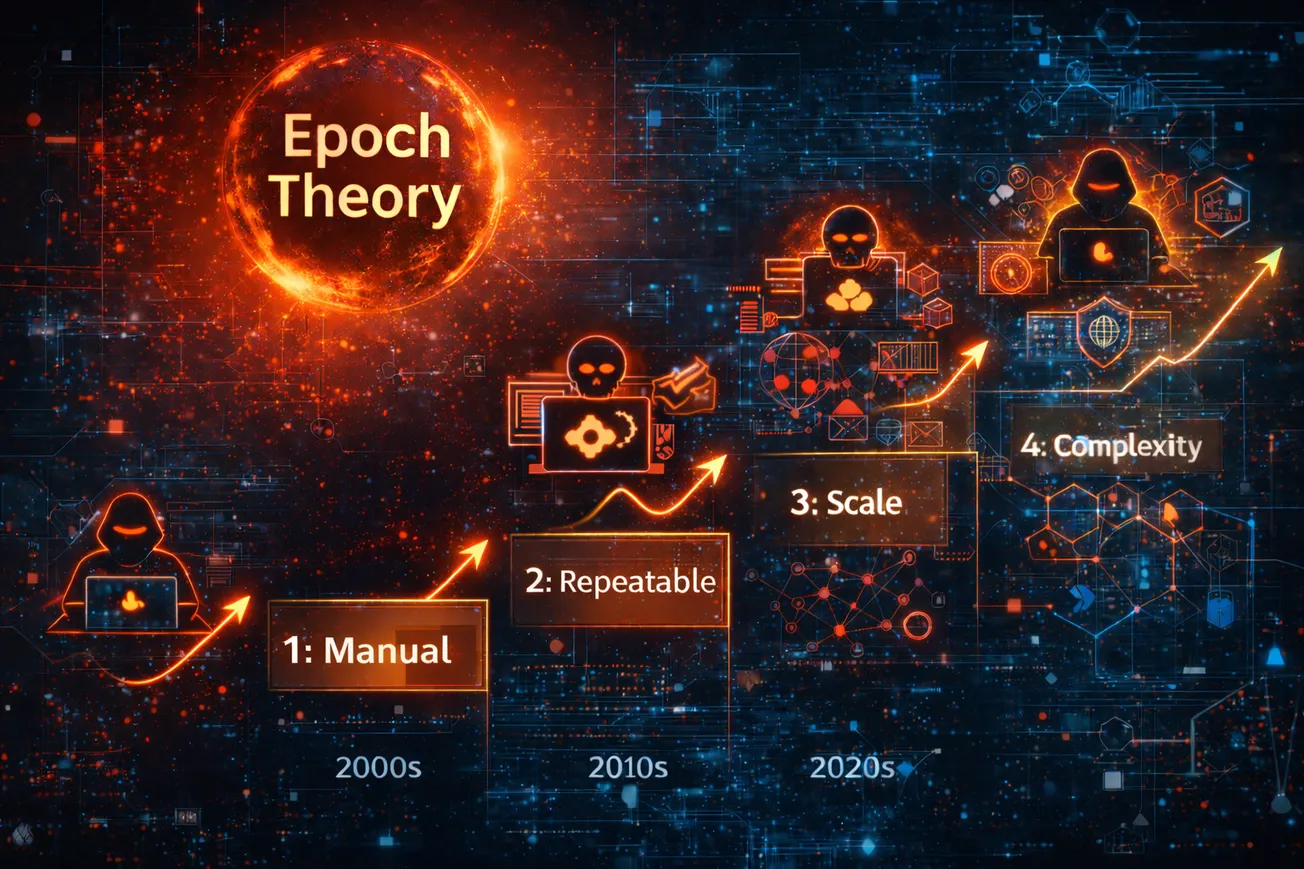 Rather than treating today’s challenges as isolated failures of tooling or process, Epoch Theory reframes them as symptoms of a broader transition. According to Grossman, security doesn’t progress linearly. It moves in epochs: periods defined by what attackers find most economically and operationally viable at a given time.